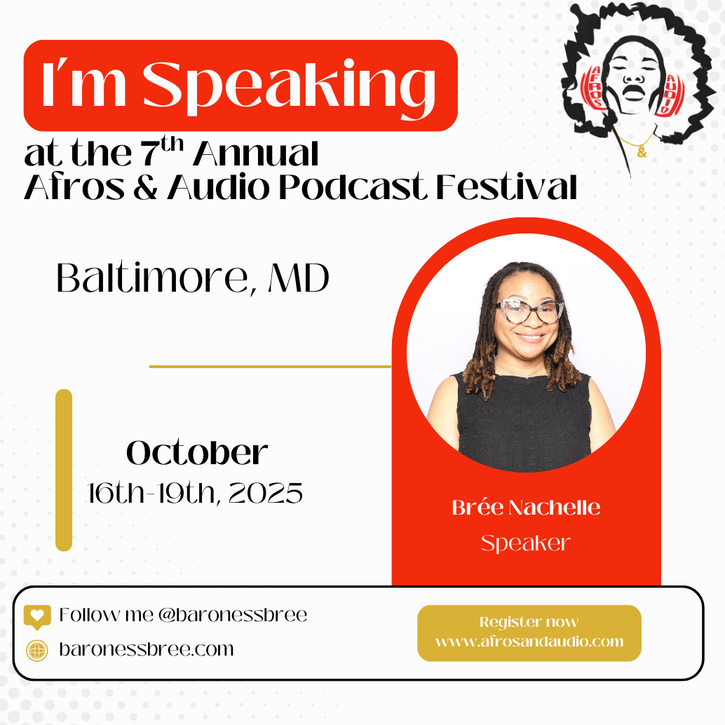 I’m speaking at the 7th and final Afros & Audio Podcast Festival, happening October 16–19, 2025 at the Reginald F. Lewis Museum in Baltimore, MD. Afros & Audio has given me the green light to share an exclusive 40% off discount with my community, so if you are an aspiring podcaster, growing creator, or entrepreneur building with audio, this is your invitation to join us. Use code speakerexclusive25 at checkout to secure your seat at this historic event.