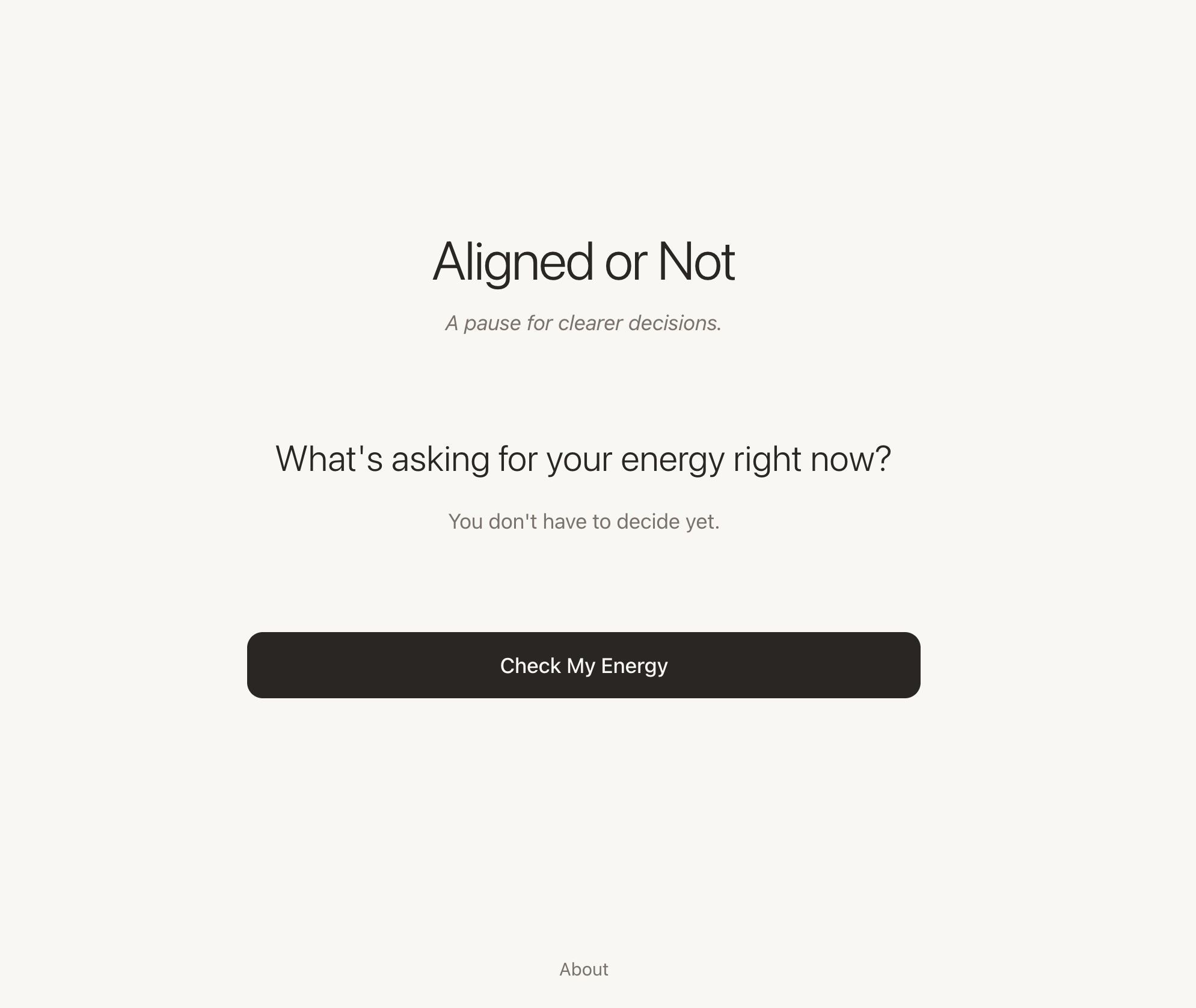 I created a simple web tool called Aligned or Not for moments when a decision looks fine on paper but doesn’t feel great in your body.It helps you check decisions through three lenses: